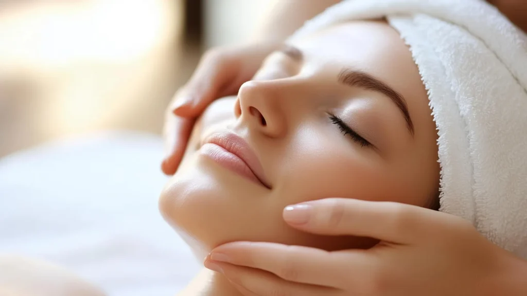 - ماساژ صورت برای بهبود گردش خون و آرامش.